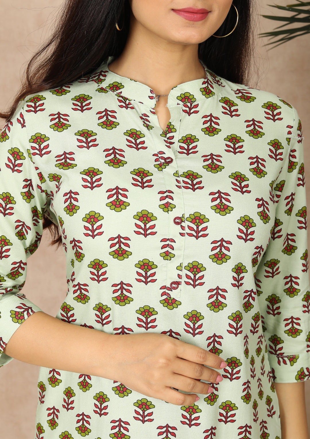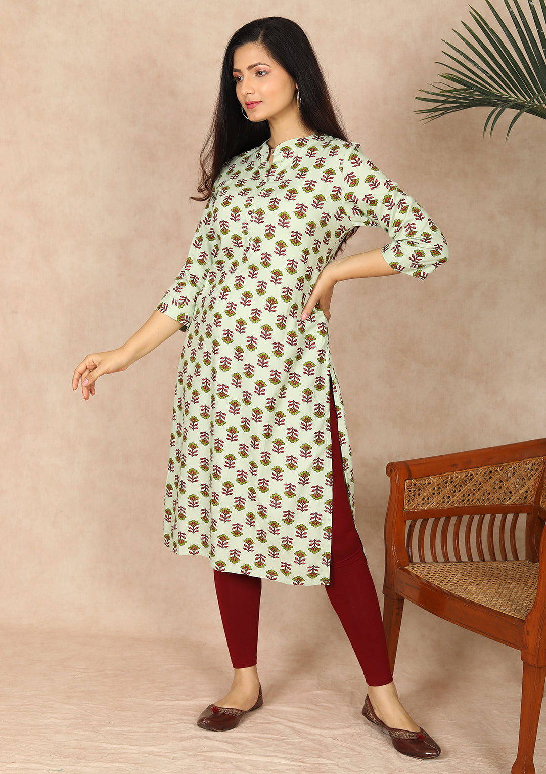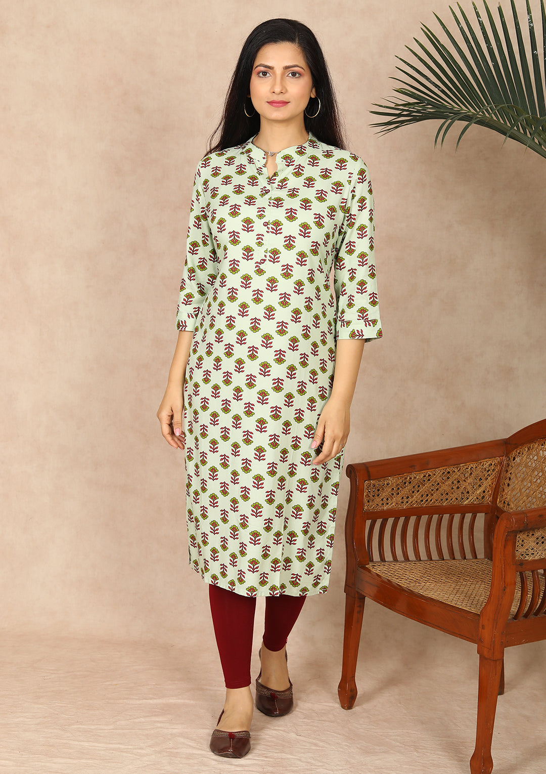 - Straight Cut Kurti with chinese Neck And 3/4th sleeve