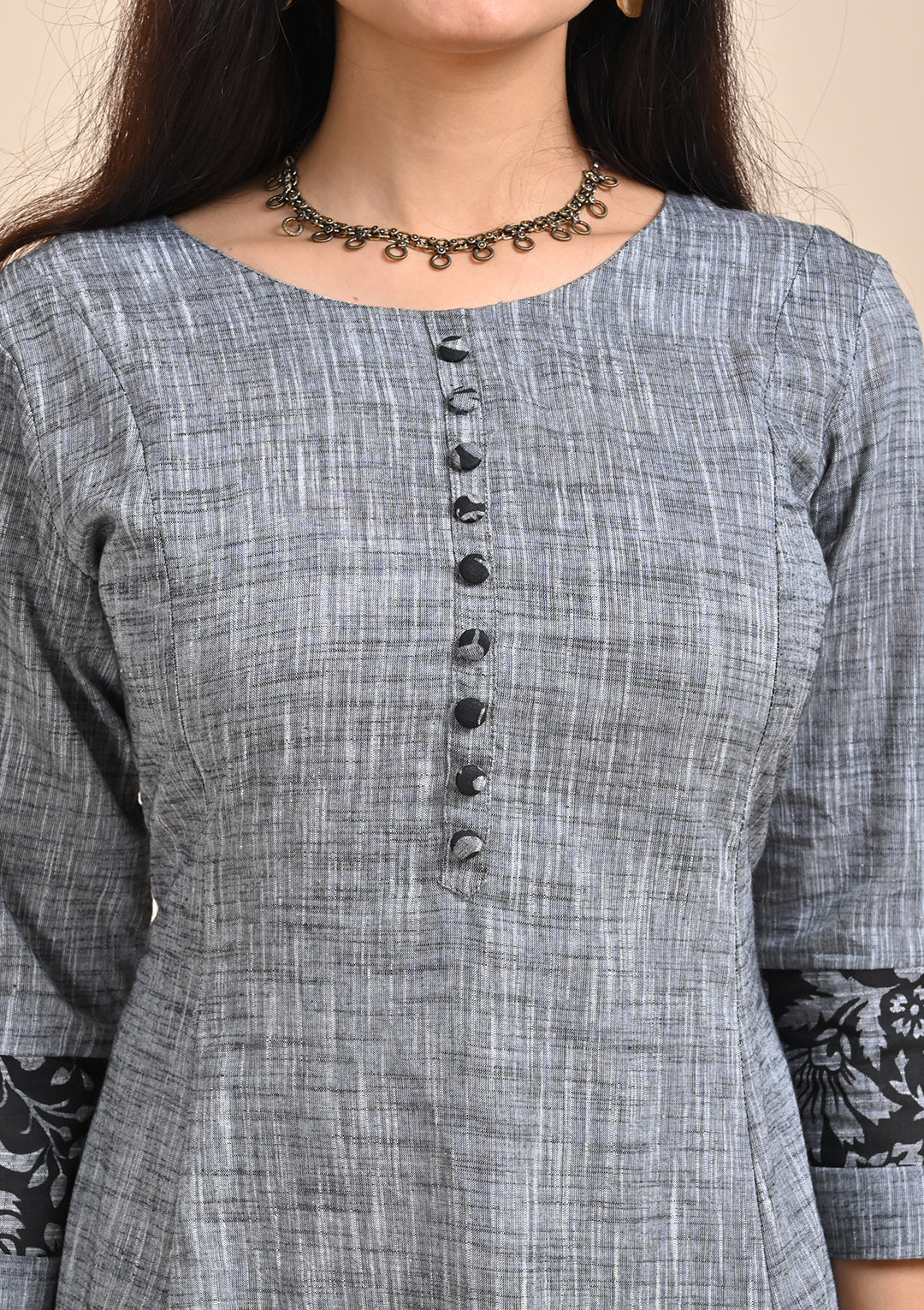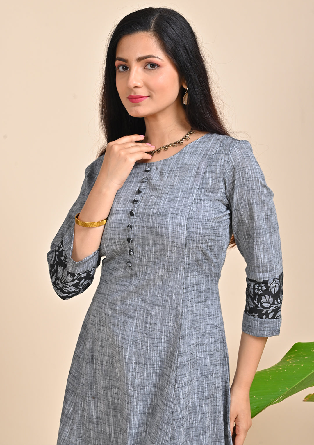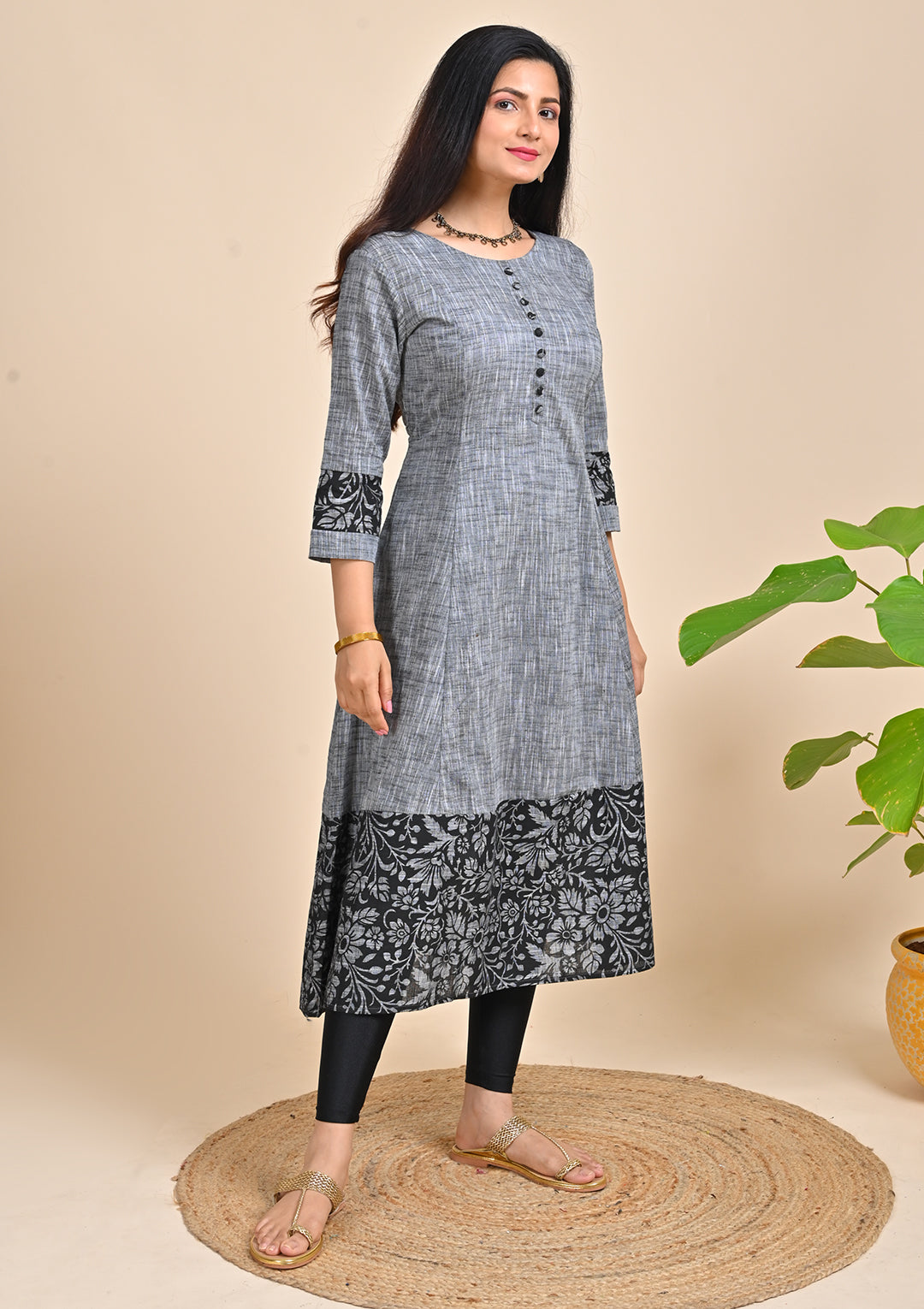 - This Kurti has Contrast Floral Printed Border Embellishments
