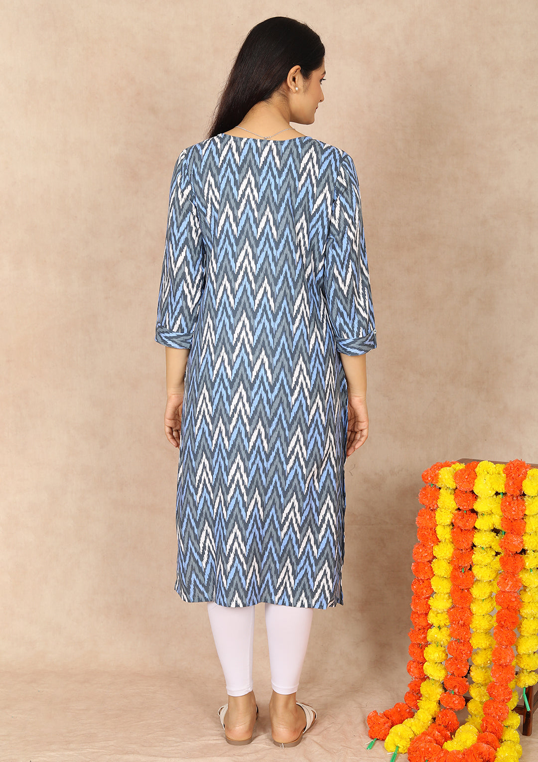- Straight Cut Kurti With Round Neck And 3/4th sleeve