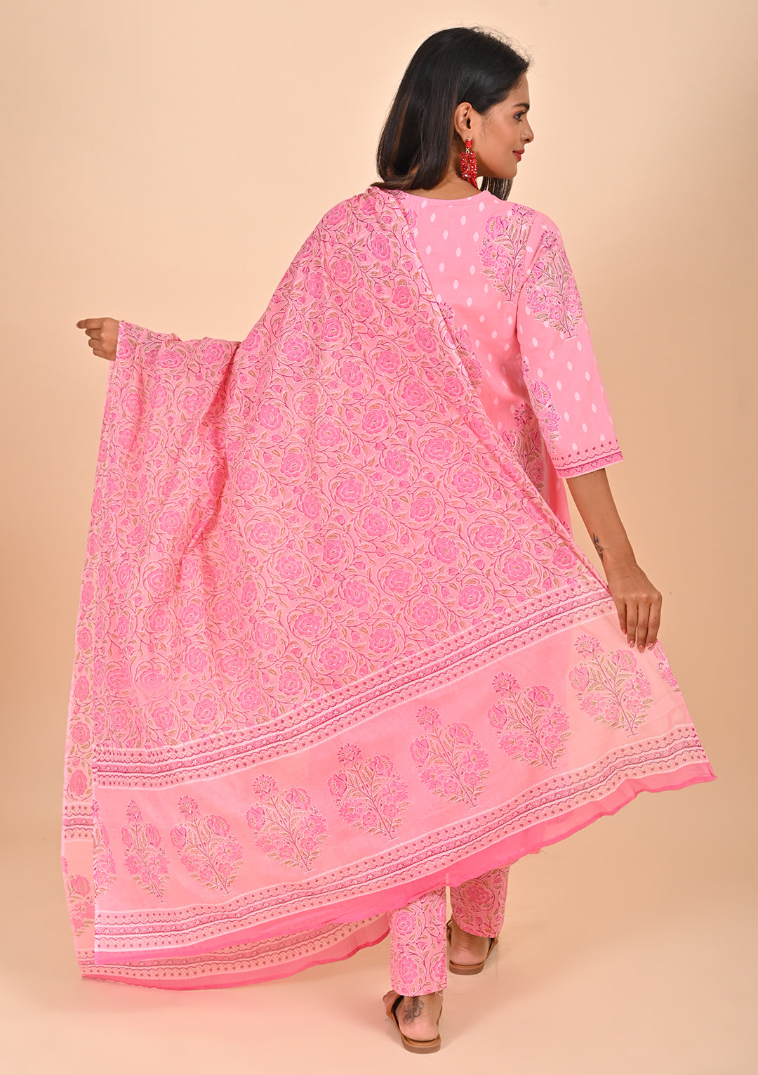 - A - line salwar Suit with V Neck And 3/4th sleeve
