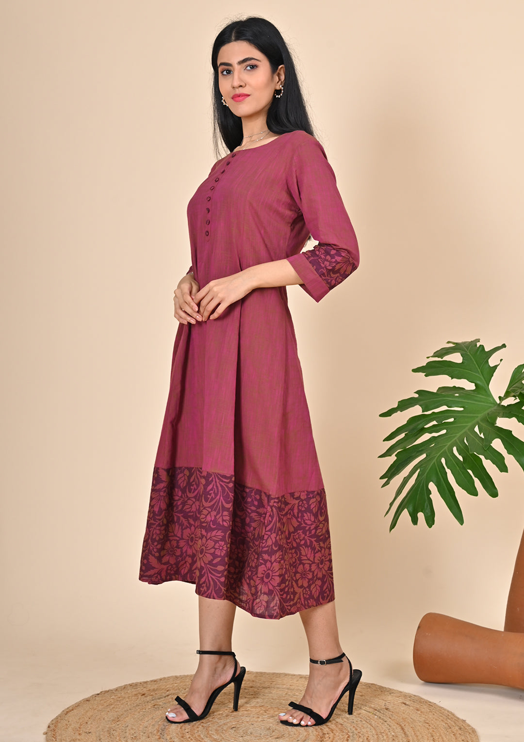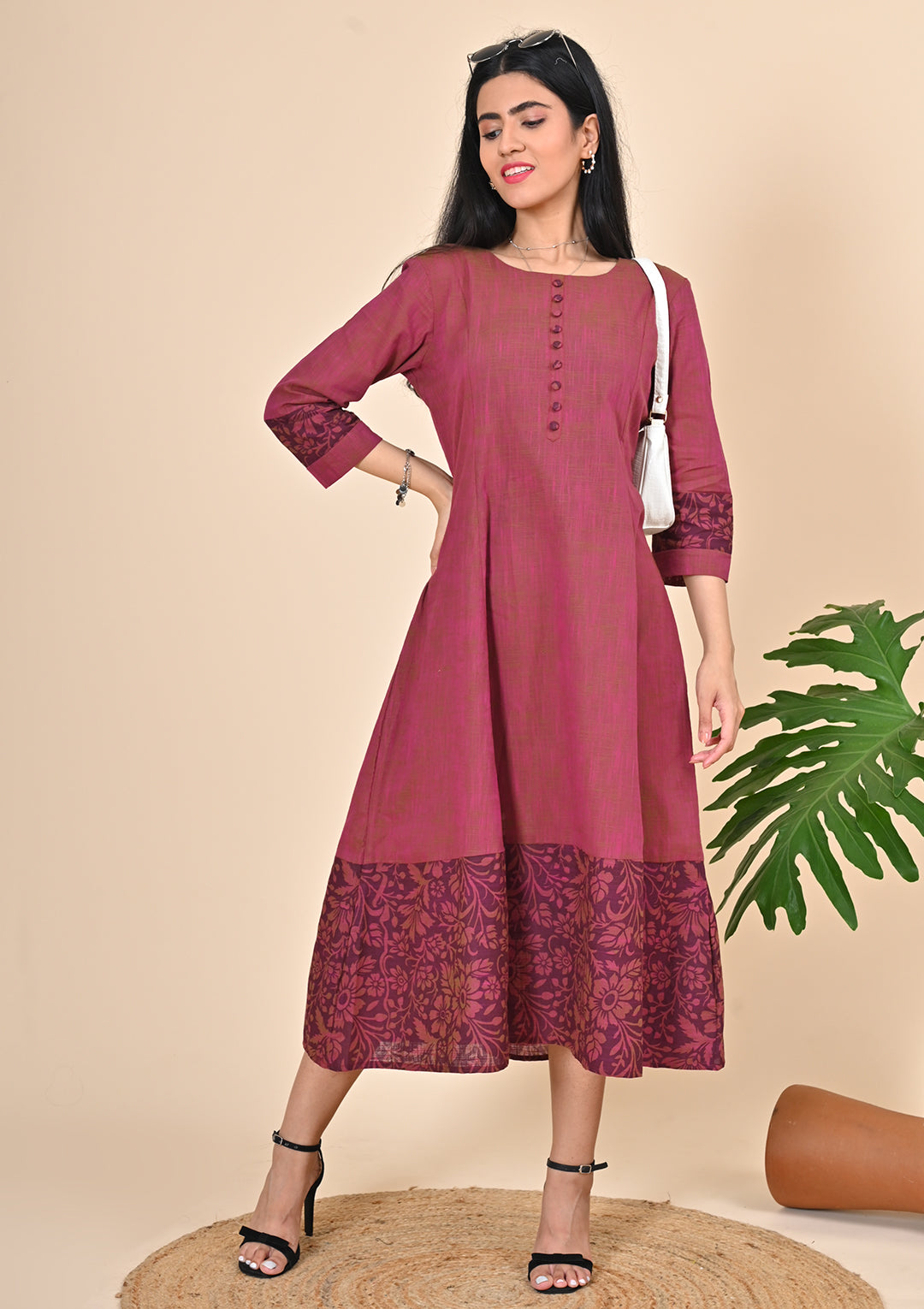 - A-line Kurti with Round Neck And 3/4th sleeve