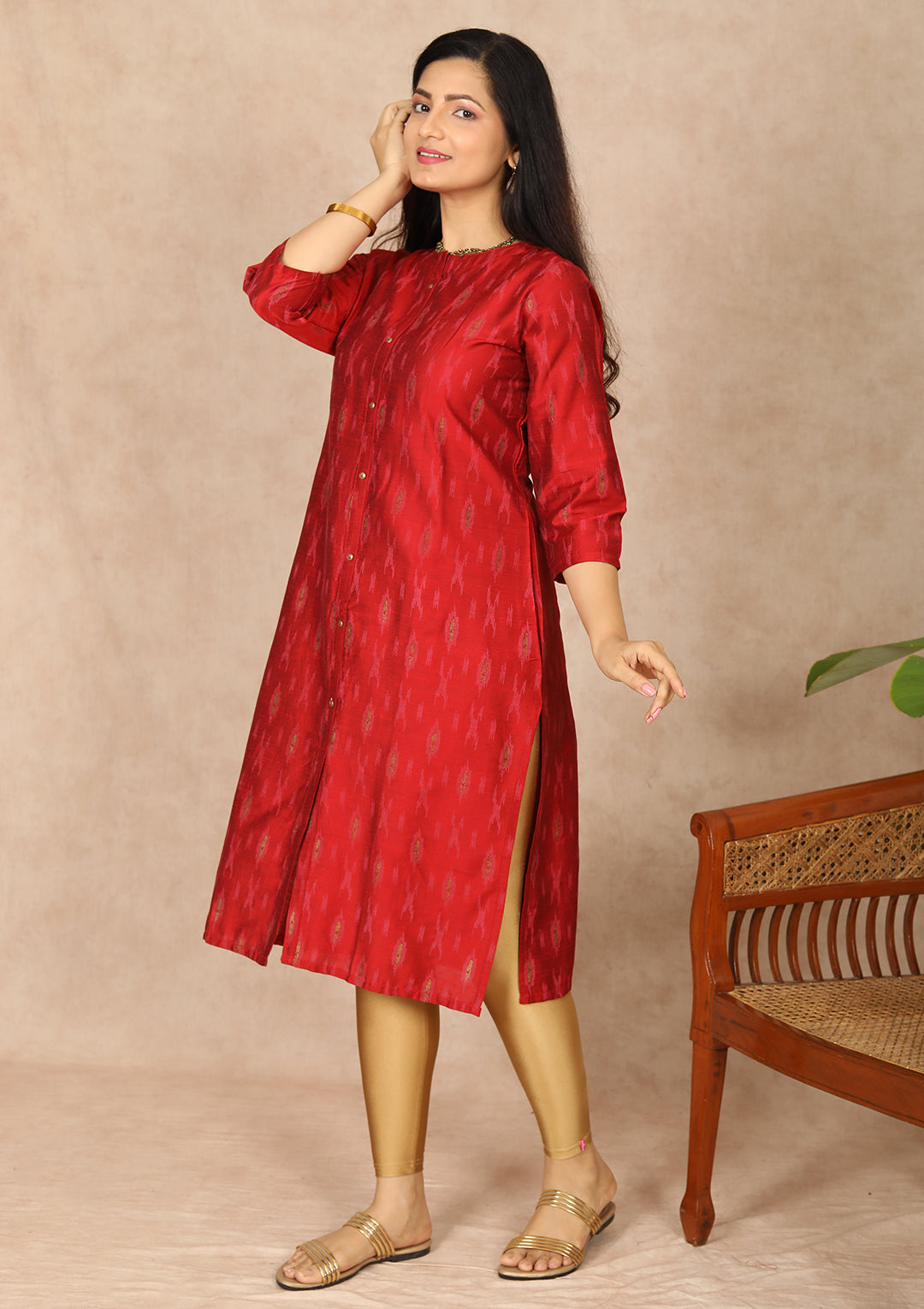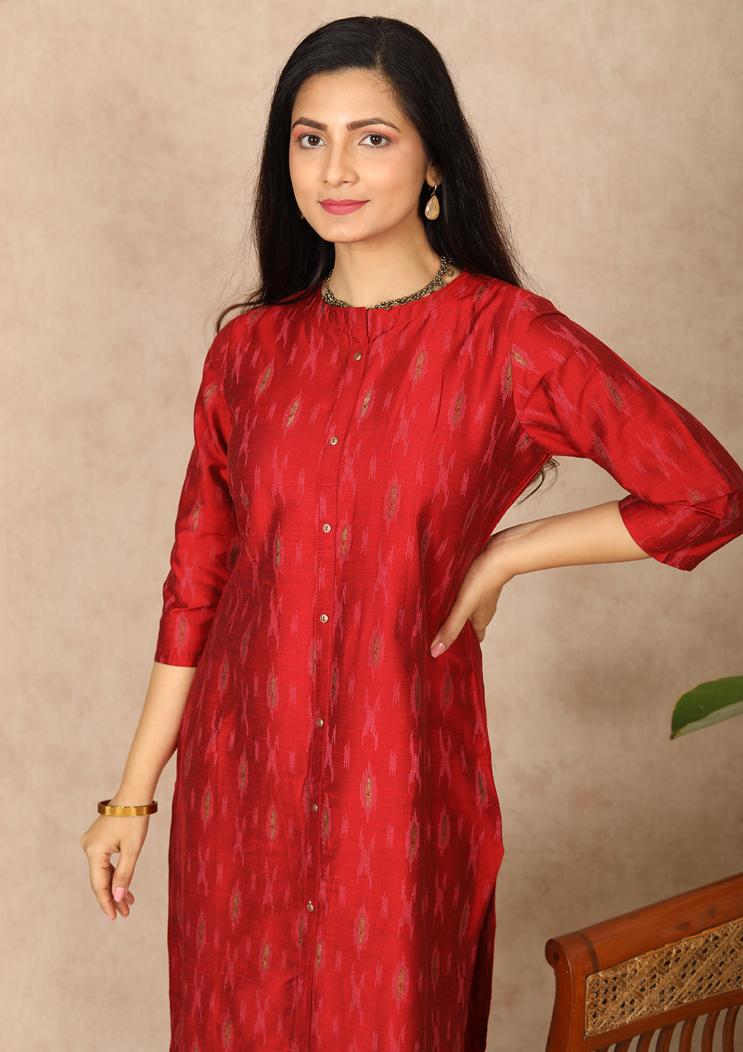 - Red Kurti In Silk Cotton Fabric